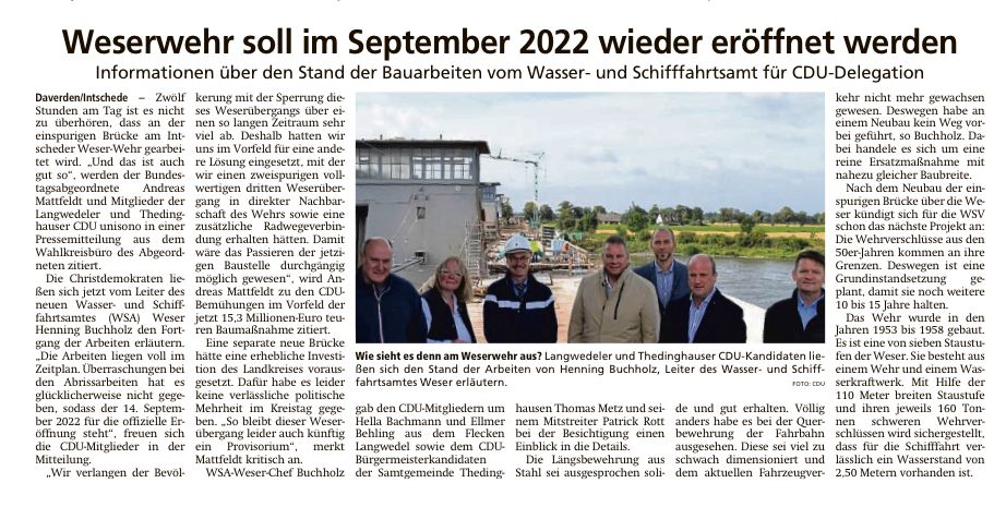 Verdener Aller Zeitung vom 26.08.2021 Sachstand der Bauarbeiten am Weserwehr Empfehlen Sie uns!Bei Facebook teilen Bei Twitter (X) teilen Bei Whatsapp teilen Diese Seite drucken Diese Seite einem Freund schicken
